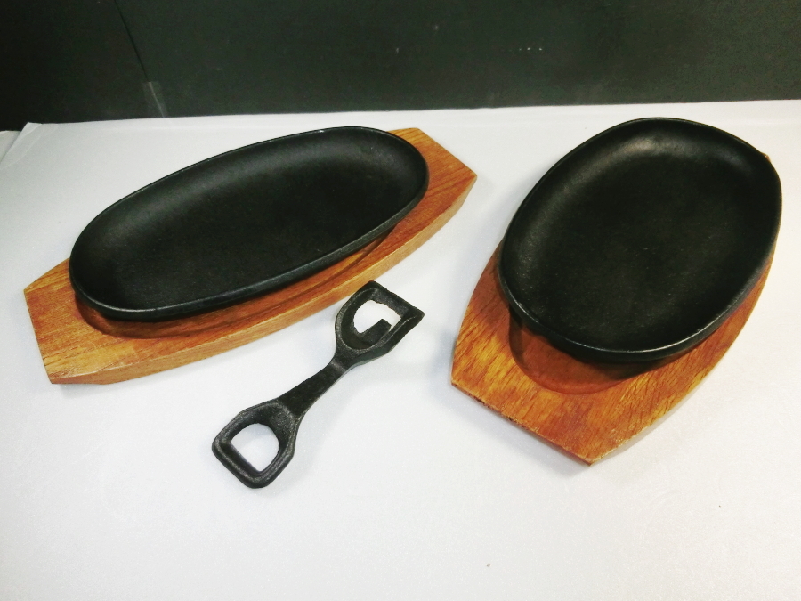 - ★未使用 ステーキ皿 ハンバーグ プレート 2枚セット 鉄板 小判型 鉄器 鉄皿 鉄鋳物
