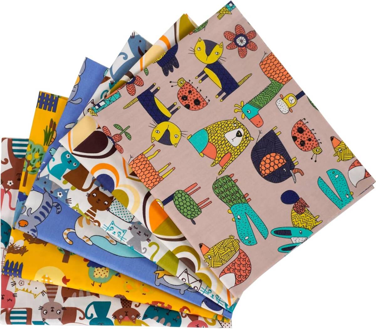 - 6枚 猫 プリント生地 棉100% 北欧風 可愛い ネコ模様 ポーチ ぬいぐるみ 手芸用 パッチワーク用 布 セット 46x56cm