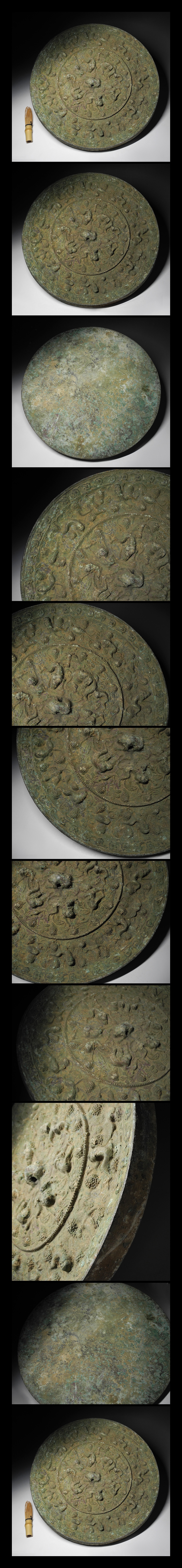 - 緑屋i■ 中国古玩 古銅 特大 古鏡 漢鏡 円鏡 海獣葡萄鏡 径約37.5cm 唐物 時代物 i9/1028-8/4-5#100