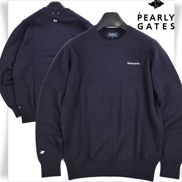 - 新品1円~★定価3.3万 PEARLY GATES パーリーゲイツ メンズ 秋冬 長袖 カシミヤ100% クルーネックニット 4 M セーター 紺 ゴルフ◆7450◆