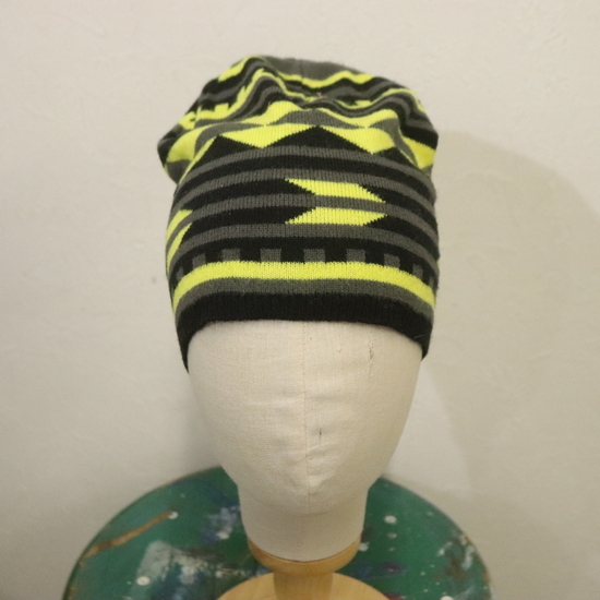 > CAP829 2000年代製 ニットキャップ■00s 表記16サイズ グレー ネイティブ hat ハット 帽子 小物 古着 アメカジ ストリート アンティーク