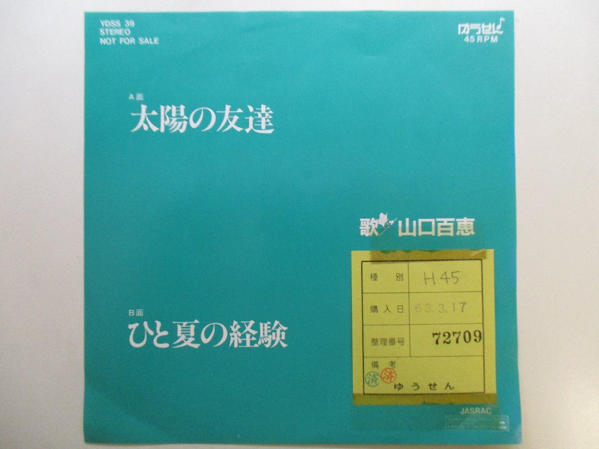 > 山口百恵 / 太陽の友達 *都倉俊一 馬飼野康二 ひと夏の経験 国内ゆうせん盤7'' (J EP)