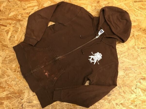 > Jellan製 Musetto 麻布大学 博物館解説サークル ミュゼット カレッジ ジップアップ長袖スウェットパーカー メンズ L 茶色