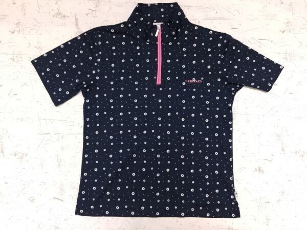 - ヘッド HEAD スポーツ 花柄 ハーフジップ ピンクロゴ刺繍 半袖ポロシャツ レディース ポリエステル100% M 紺