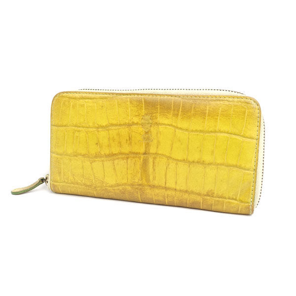 - ■ フェリージ クロコ 型押し長財布 ラウンドファスナー レザー 辛子色 125 (0990013989)
