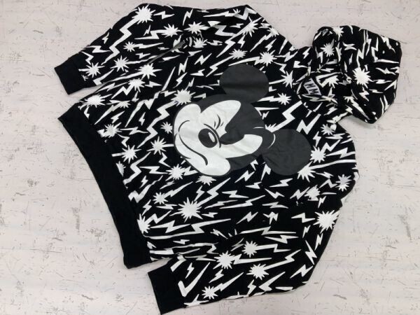 > DAMMY ダミー ディズニー DISNEY ミッキーマウス キャラクター 総柄 ビッグプリント プルオーバー スウェット パーカー 男女兼用 F 白黒