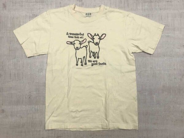 > 大塚水央 石垣島 ミオ屋 ヤギ 山羊 イラスト プリント おもしろ かわいい スーベニア お土産 半袖Tシャツ メンズ M ベージュ