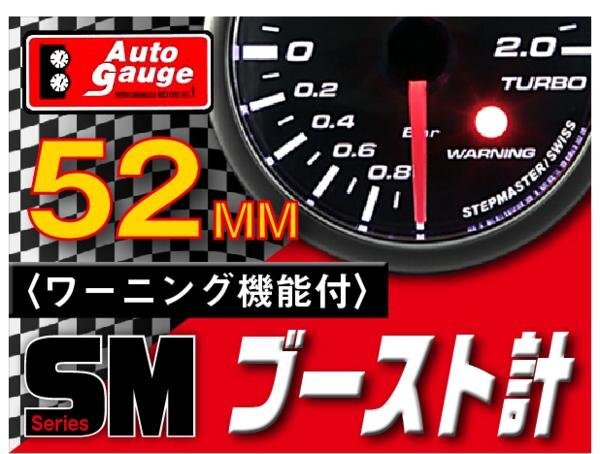 - 大人気メーター オートゲージ ブースト計 52Φ SM スイス製モーター スモークレンズ ワーニング機能 OPセレモニー ホワイトLED 52mm
