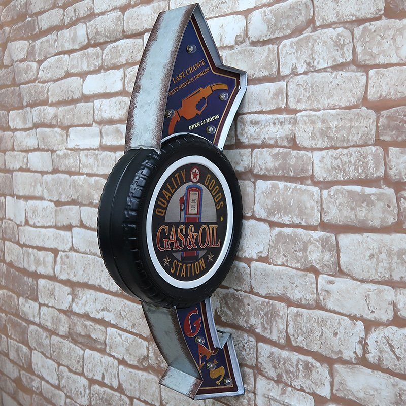 - アメリカン雑貨 立体看板 ウォールサイン ブリキ風 アメリカンレトロ アメリカ雑貨 電球付 インテリア GAS&OIL ガレージ ビンテージ BR-45