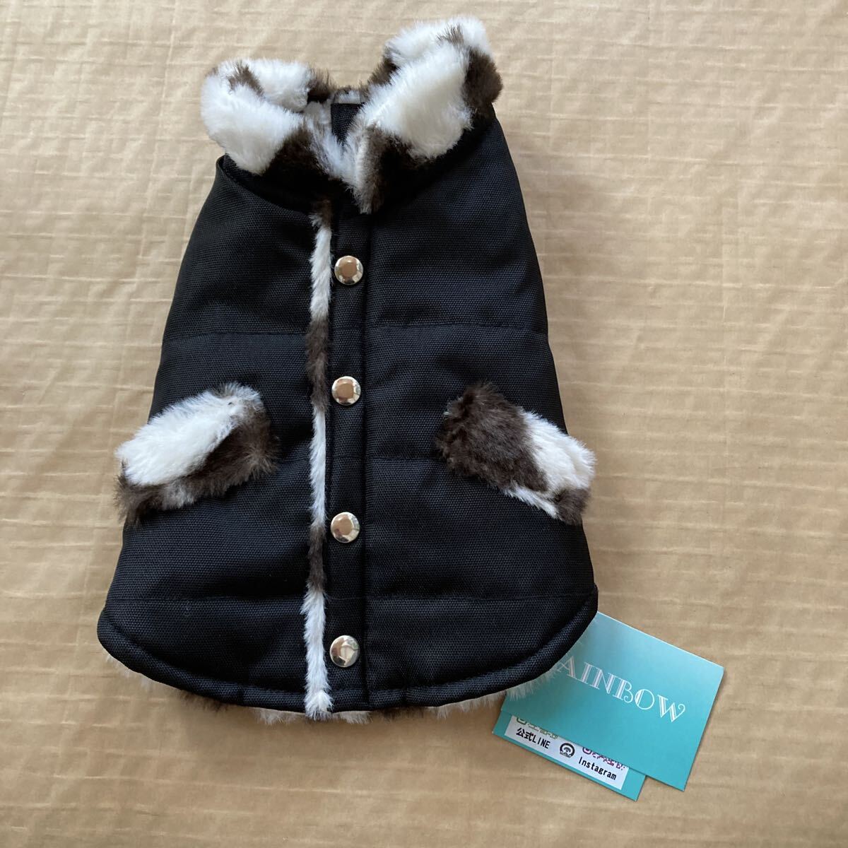 - n6575『レインボー』ドッグウェア お出かけベスト ブラック Sサイズ ペット服 犬服 未使用