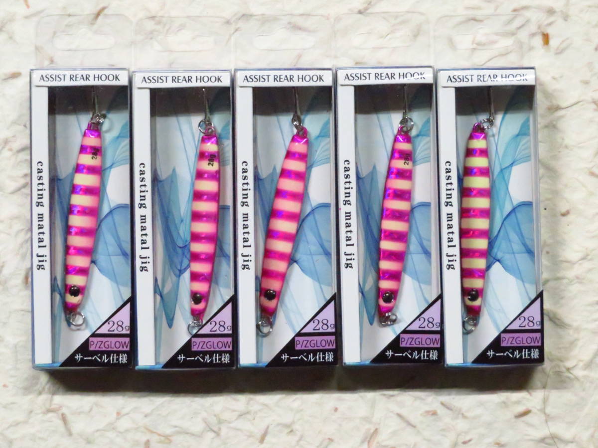 - レオン CB-Z P/ZGLOW 28g 5個セット サーベル仕様 メタルジグ REON ジギング ゼブラグロー