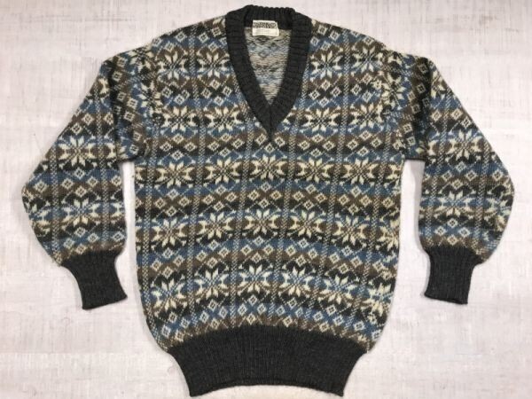 > ジャンセン Jantzen オールド OLD レトロ カントリー 古着 Vネック ノルディック雪柄 ジャガード ニットセーター レディース S グレー×青