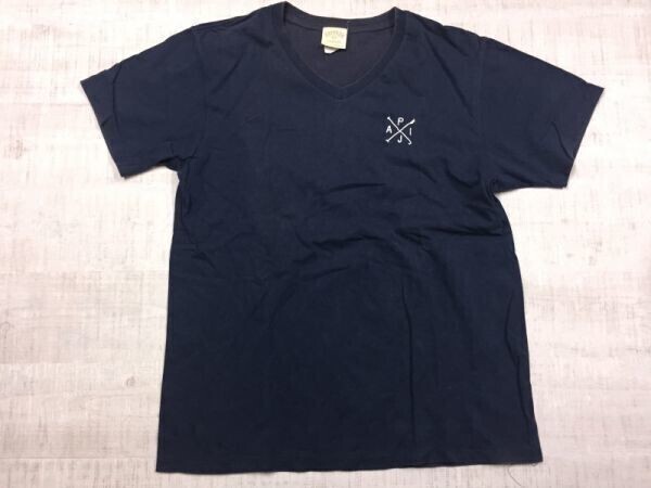 > PRIVATE JAPAN A.I. 刺繍 Vネック アメカジ ネイティブ ジュエリーブランド 半袖Tシャツ カットソー メンズ M 紺