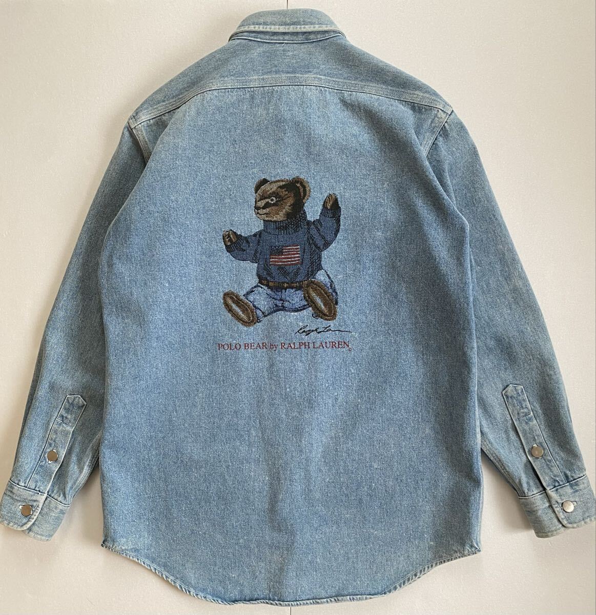 > ビンテージ◆希少◆80s 90s ポロカントリー ラルフローレン RALPH LAUREN ポロベア デニムシャツ 長袖シャツ メタルボタン ポロカン160
