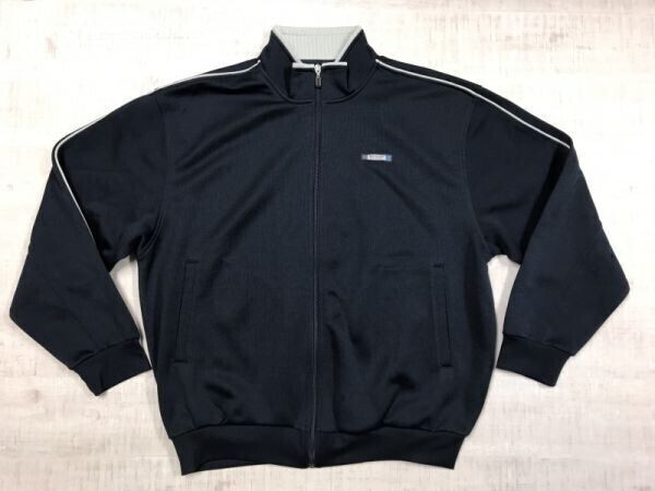 > ダンロップ DUNLOP オールド レトロ ジャージ トラックジャケット ジョグトップ メンズ ジップアップ 袖ライン スポーツ L 紺