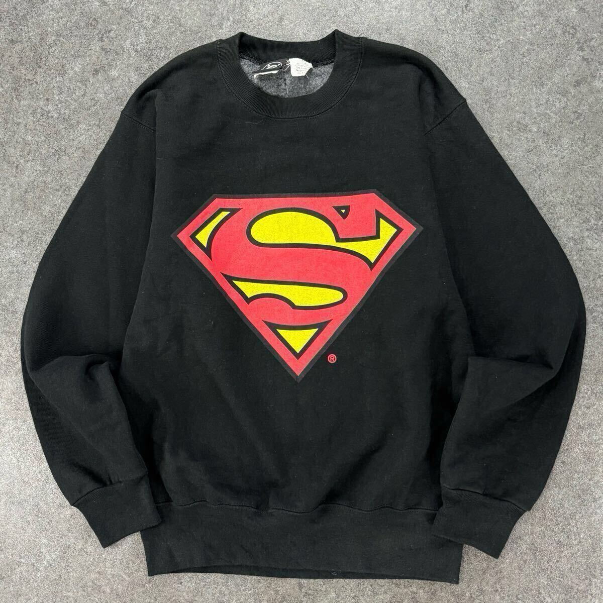 > USA製 90s DC Comics Superman DCコミックス スーパーマン スウェット トレーナー ヴィンテージ ロゴ/大判/プリント アメコミ 黒 メンズ