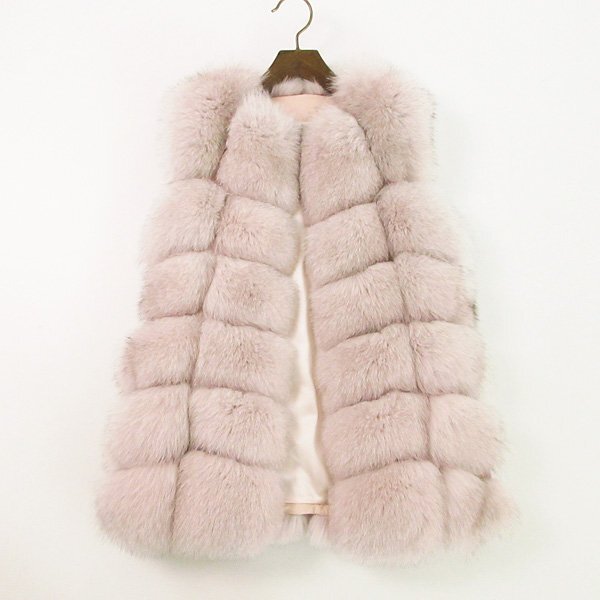 - 売切り!!★r7fu110301★毛とても綺麗でなめし柔らかめ saga furs サガフォックス 染め 薄ピンク系 フォックス ベスト ノ着丈76cm F