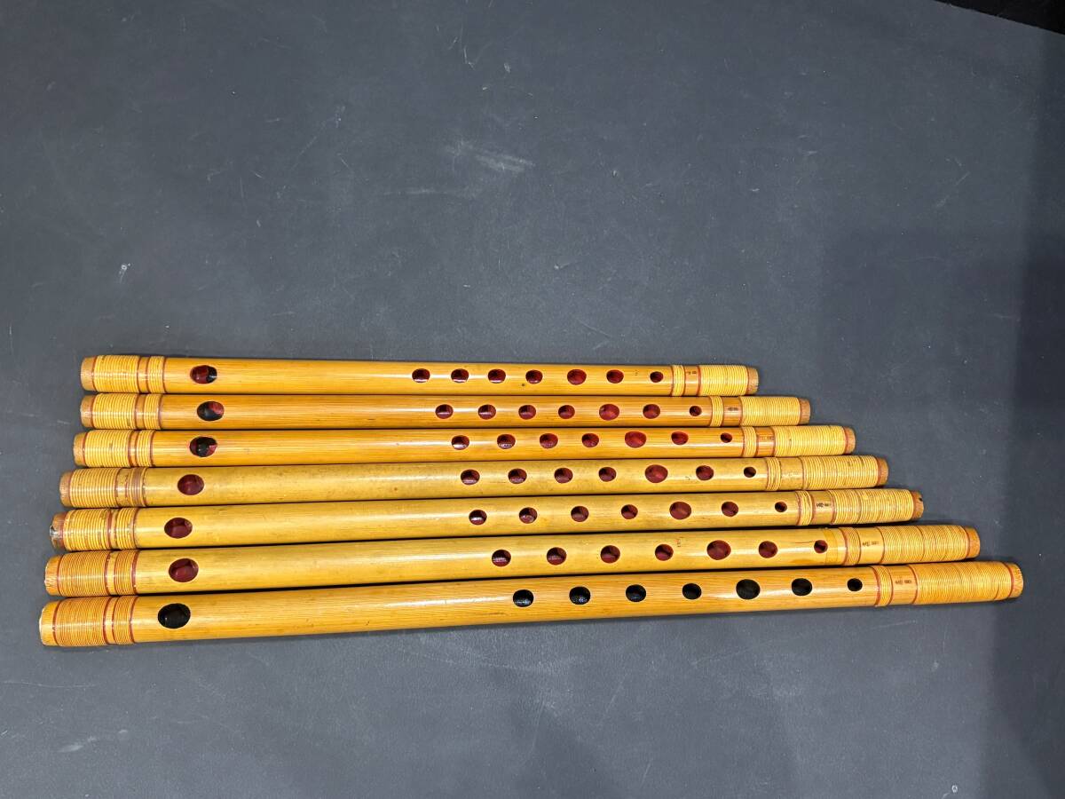 - 篠笛 7本 まとめ 在銘 七七七月 喜月 約34cm~約47cm 笛 横笛 楽器 和楽器 管楽器 木管楽器 民族楽器 雅楽 伝統工芸品 現状品 AJ094080