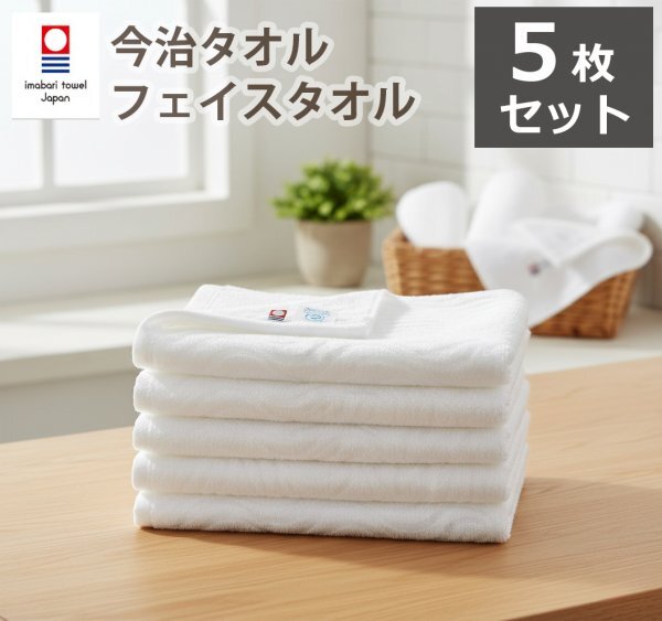 > 【送料無料】今治タオル フェイスタオル オーシャン ホワイト 5枚セット 綿100% 33×80cm まとめ買い 新品