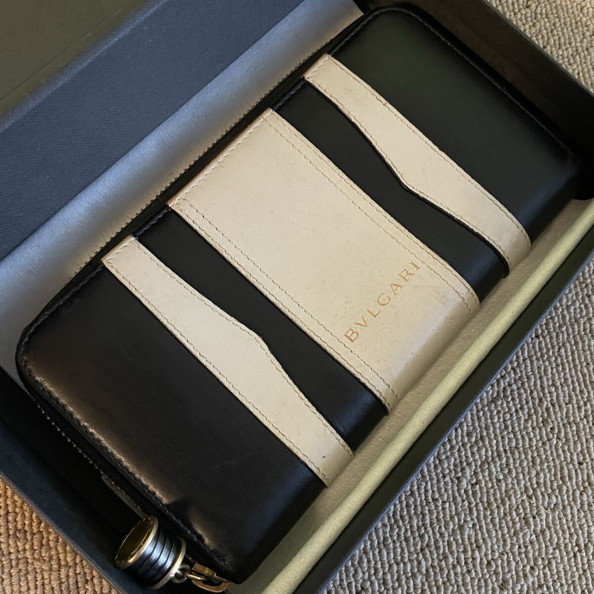 - 一円 美品 BVLGARI ブルガリ ロングウォレット ラウンドファスナー 長財布 ビーゼロ 財 ブラック 黒 ホワイト