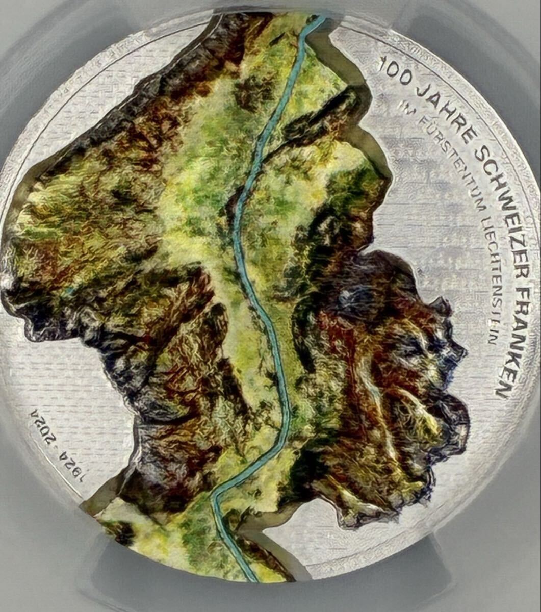- PSGS SP70 リヒテンシュタイン 銀貨 2024年 ★限定1000枚★ スイスフラン導入100周年 10フラン カラー ディープレリーフ CIT 大型銀貨