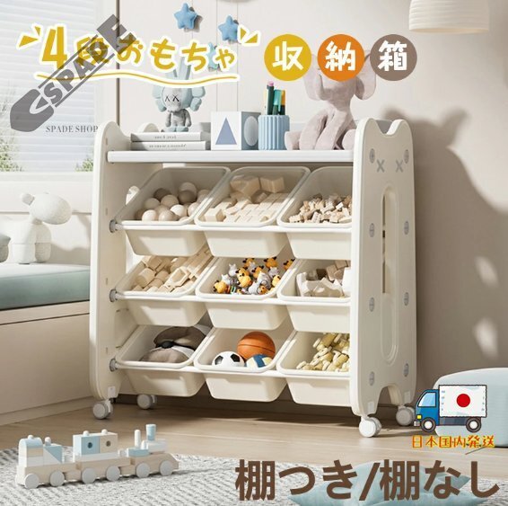- 【国内発送】おもちゃ収納 4段 子ども 大容量 収納ラック インナーボックス付 子供部屋 ラック 棚 コンパクト 小物収納 かわいい 片付けが