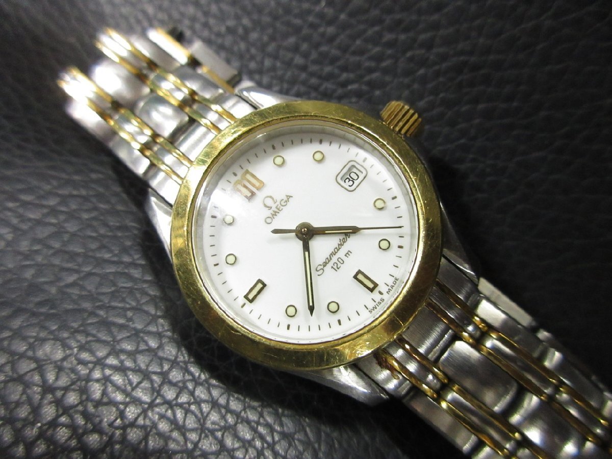 - 【TR-5727】1円 オメガ OMEGA 時計 シーマスター 120m クオーツ コンビ デイト レディース ベルト ジャンク 現状品【千円市場】