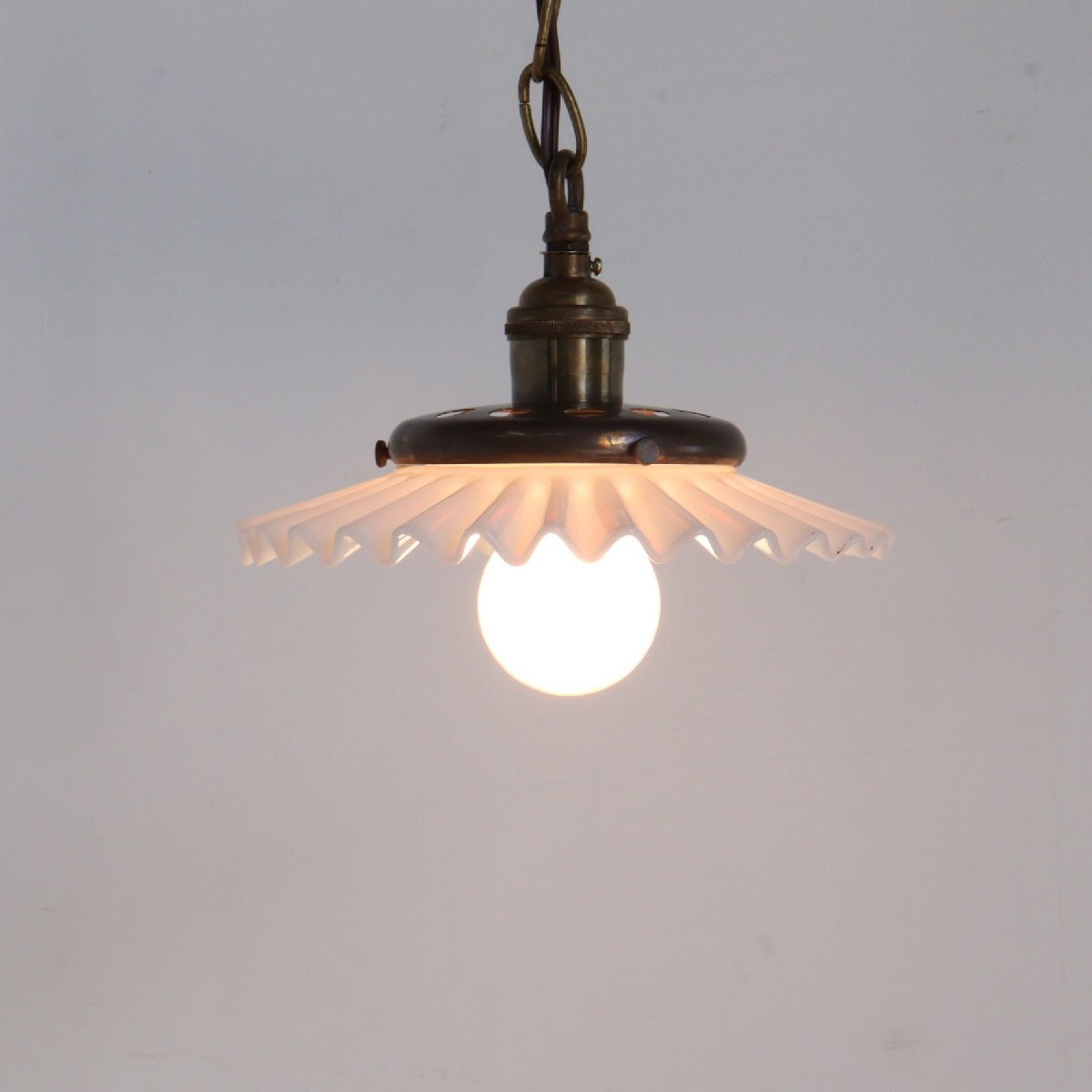 > 30s~40s フリルシェード ペンダントランプ/アールデコ ミルクガラス アンティーク 吊り下げランプ 照明 ランプ#705-5-036-413
