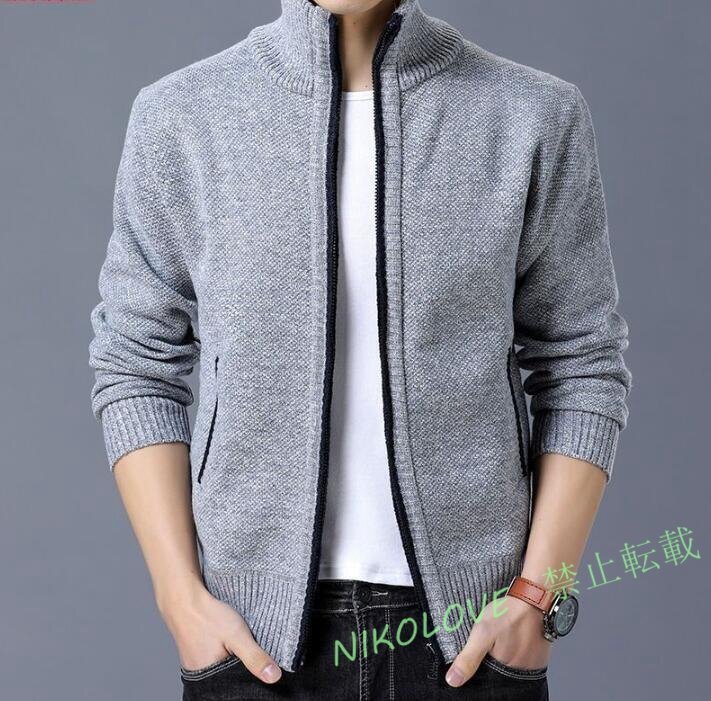 > ☆新品 ジャケット グレー メンズ 服 ニット ジップアップ 裏起毛 裏フリース ブルゾン カーディガン ゴルフウェア 40代50代60代 冬春
