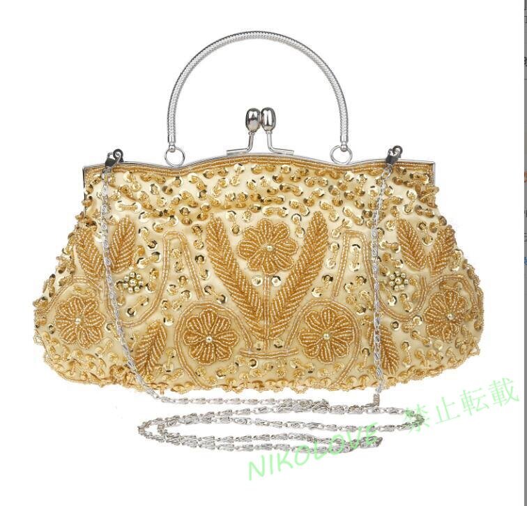 - ☆新品 パーティーバッグ 2WAY ロングチェーン ショルダーバッグ ビーズバッグ 可愛い の展開 結婚式 参列 二次会 クラッチバッグゴールド
