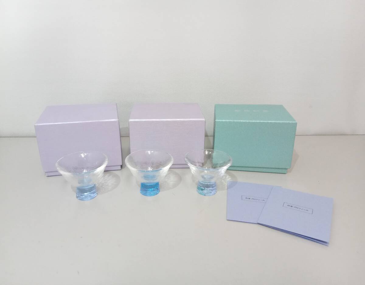 - 【新品】多田美波 献血記念 冷酒グラス 合計3点セット/酒器/お猪口/ぐい呑み/酒盃/酒杯/直径約7.3cm/高さ約5.7cm/ガラス製/LIB22