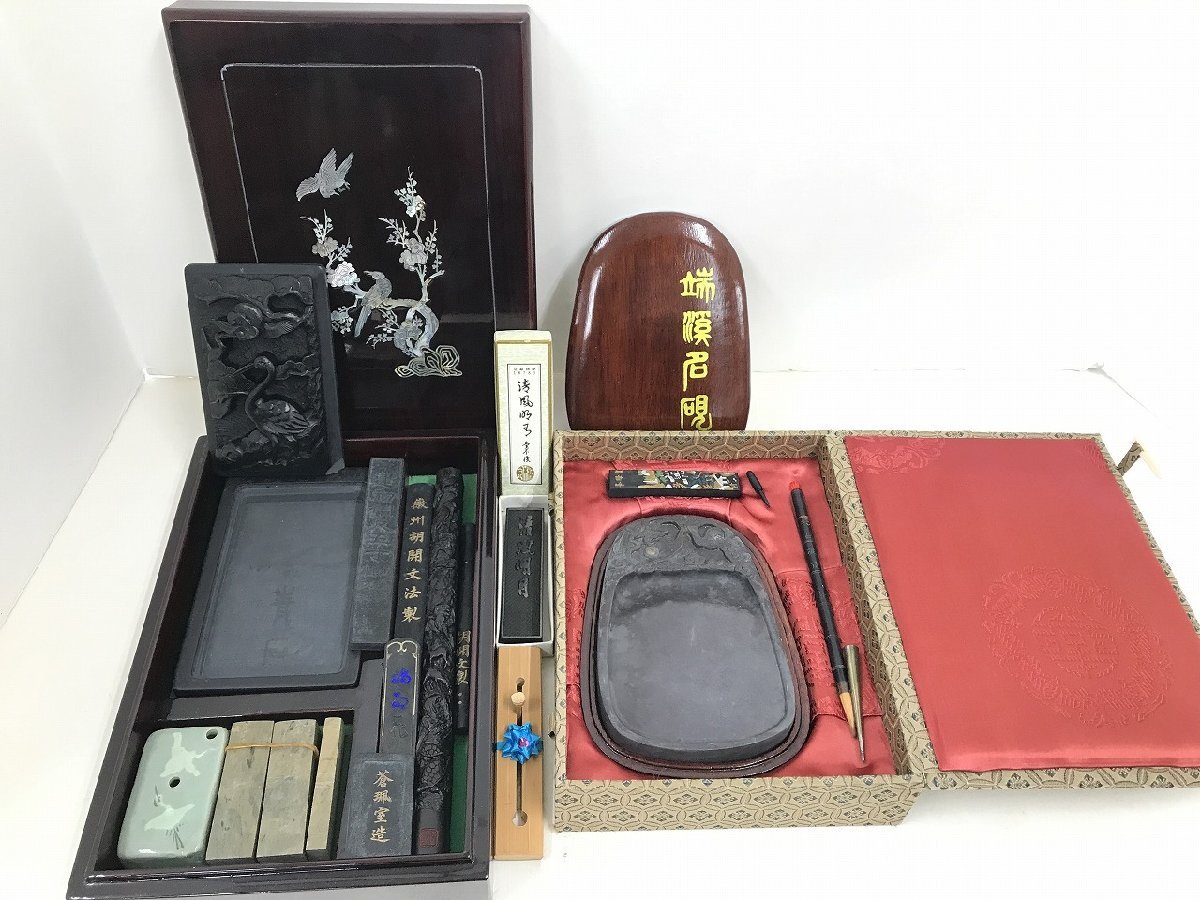 - キングラム[31]書道セット 端渓石 硯 すずり 中国 韓国 金不換筆房 印材 文鎮 筆 箱 彫刻 龍 鶴 習字 【送料無料】@574