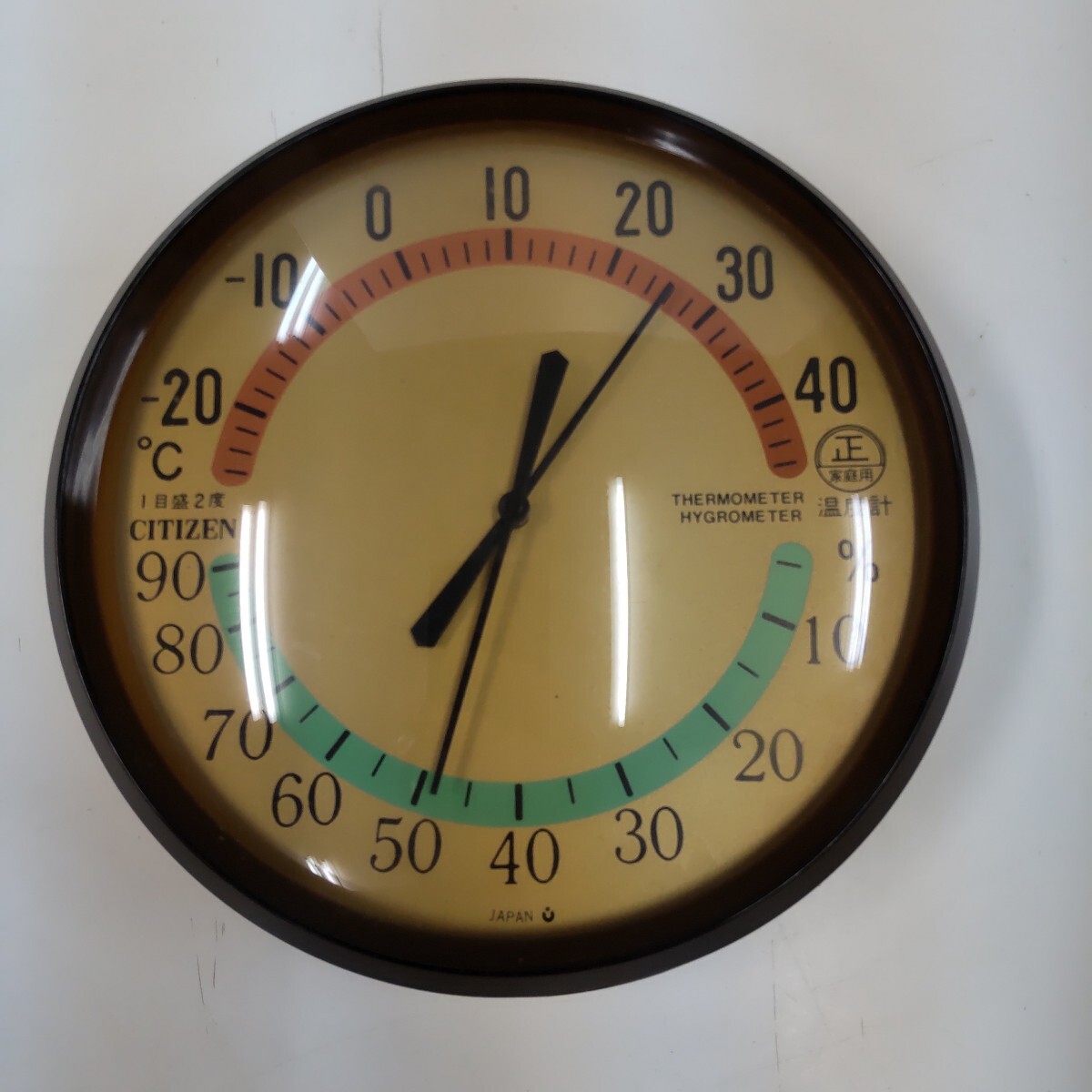 - s857 CITIZEN シチズン 温度計 湿度計 壁掛け 丸型 アナログ 昭和レトロ 温湿度計