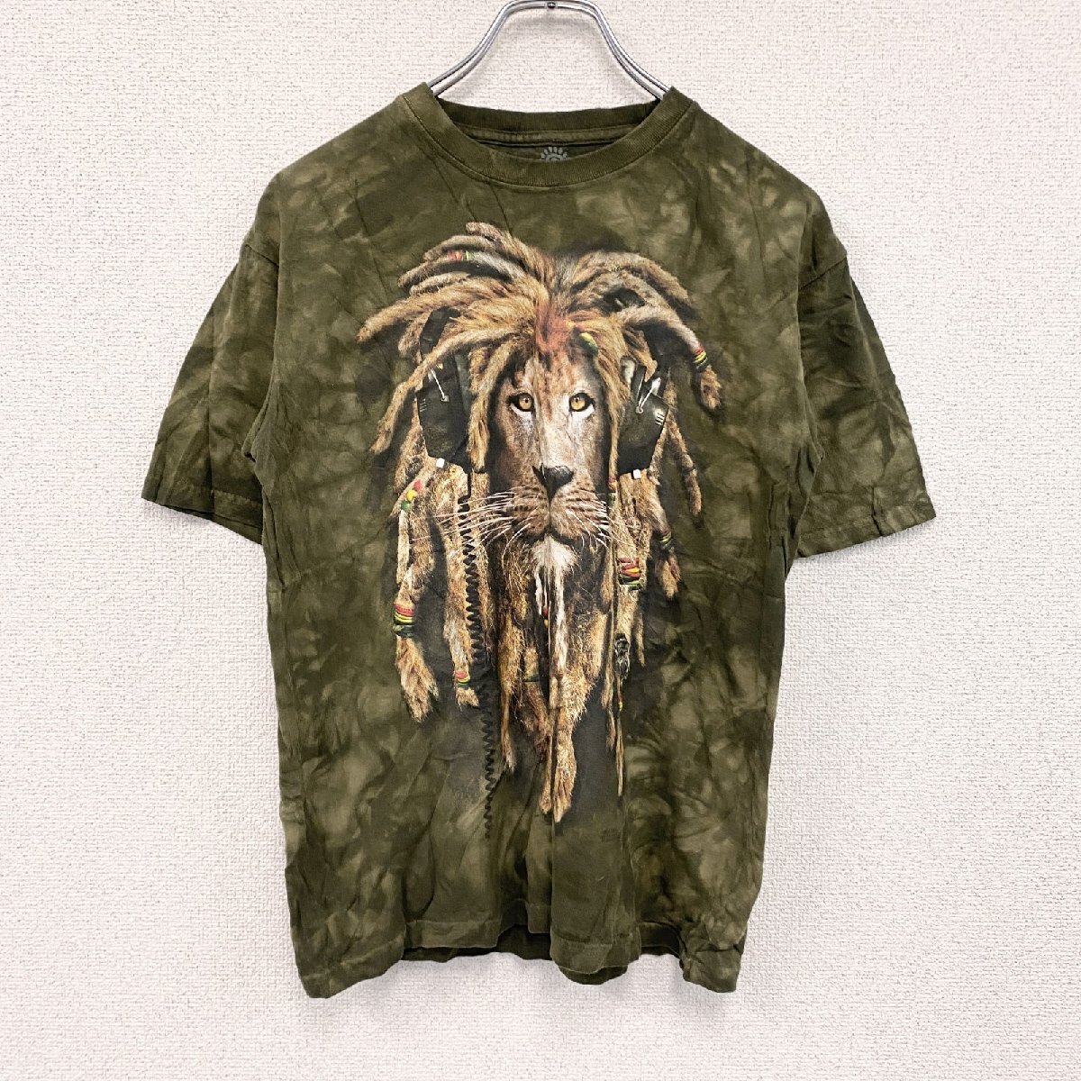 > 古着 used THE MOUNTAIN ザマウンテン 半袖アニマルプリントTシャツ タイダイ柄 カーキ XLサイズ