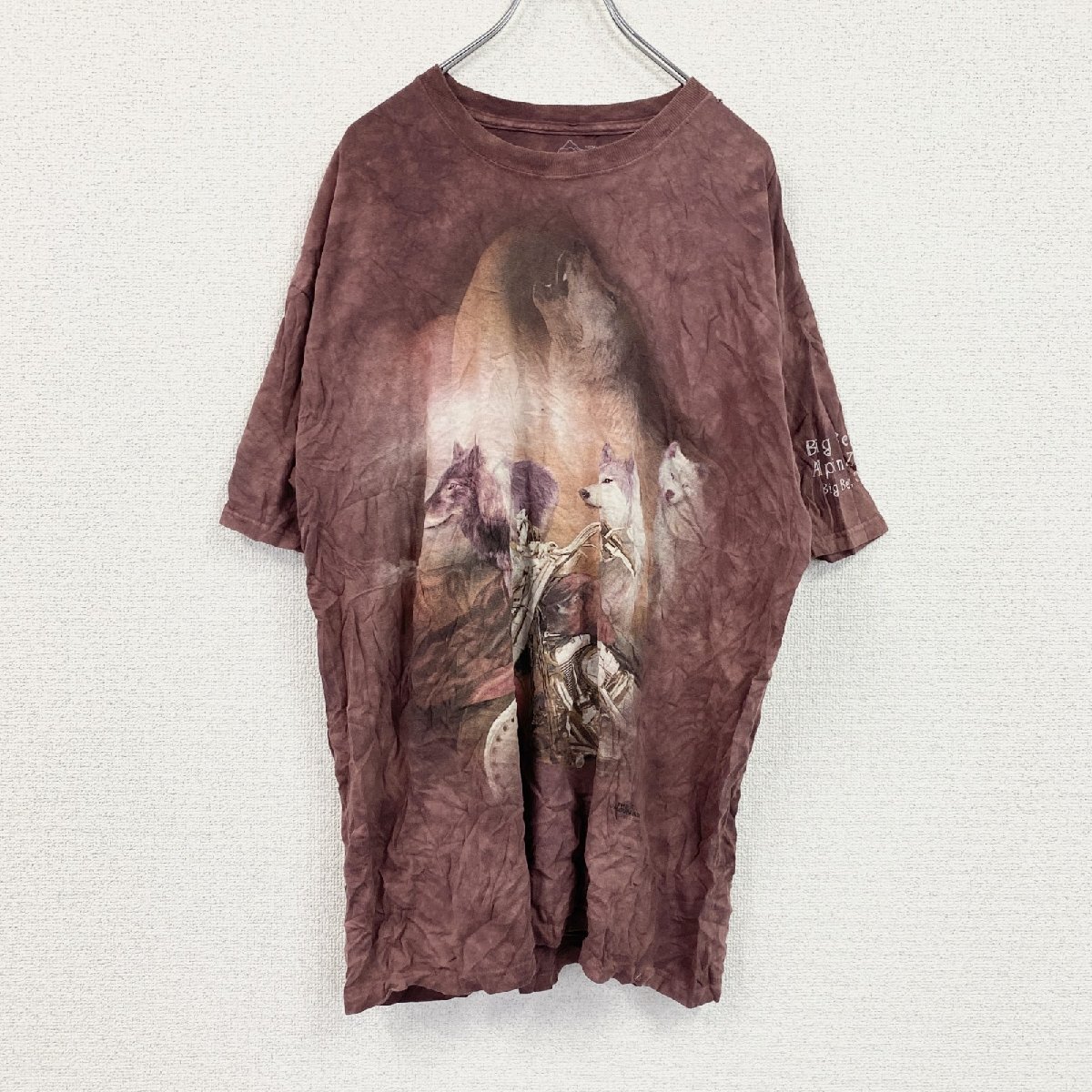 > 古着 used THE MOUNTAIN ザマウンテン 半袖プリントTシャツ アニマルT タイダイ ワインレッド XLサイズ