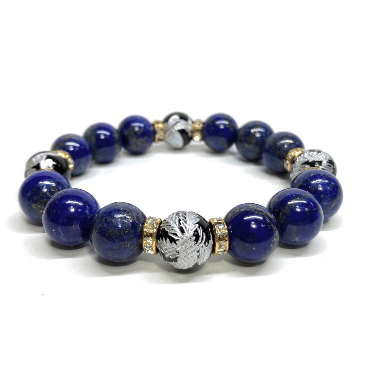 - 四神獣銀彫オニキス×ラピスラズリ 12mm パワーストーン ブレスレット天然石 青龍 白虎 玄武 朱雀 運気上昇 開運 金運 お守り 四神相応 G