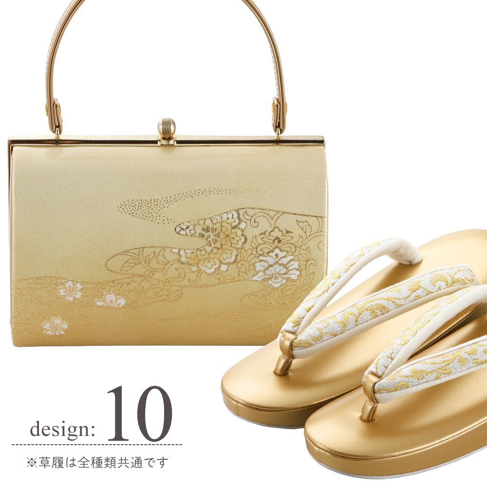 - ◆礼装用◆草履 バッグセット エナメル ソフト鼻緒 ゴールド 金 bs-375 (10) Sサイズ 【留袖 黒留 結婚式 卒業式 訪問着 フォーマル】