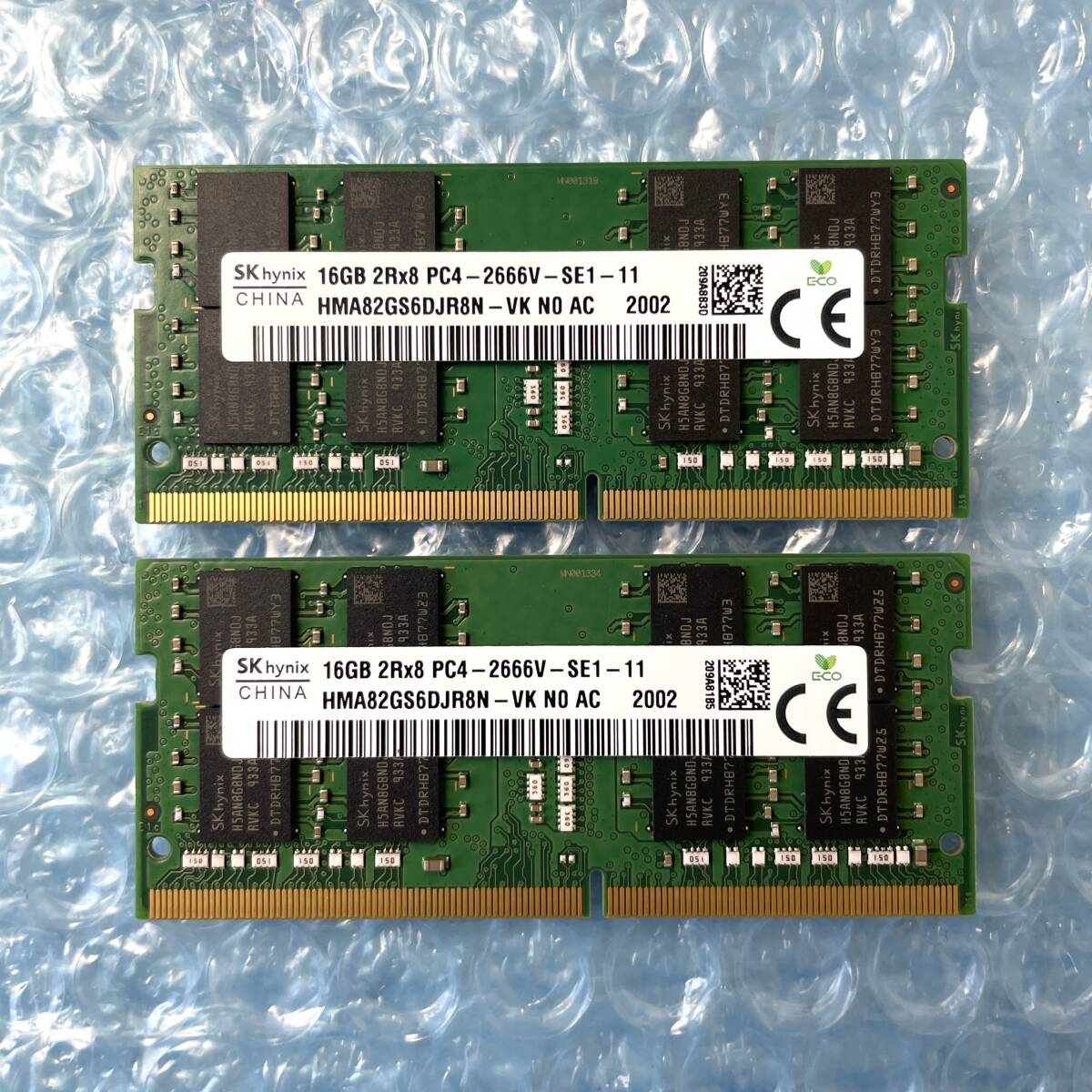 > SKhynix 16GB×2枚 計32GB DDR4 PC4-2666V-SE1-11 ノートPC メモリ【NM-495】