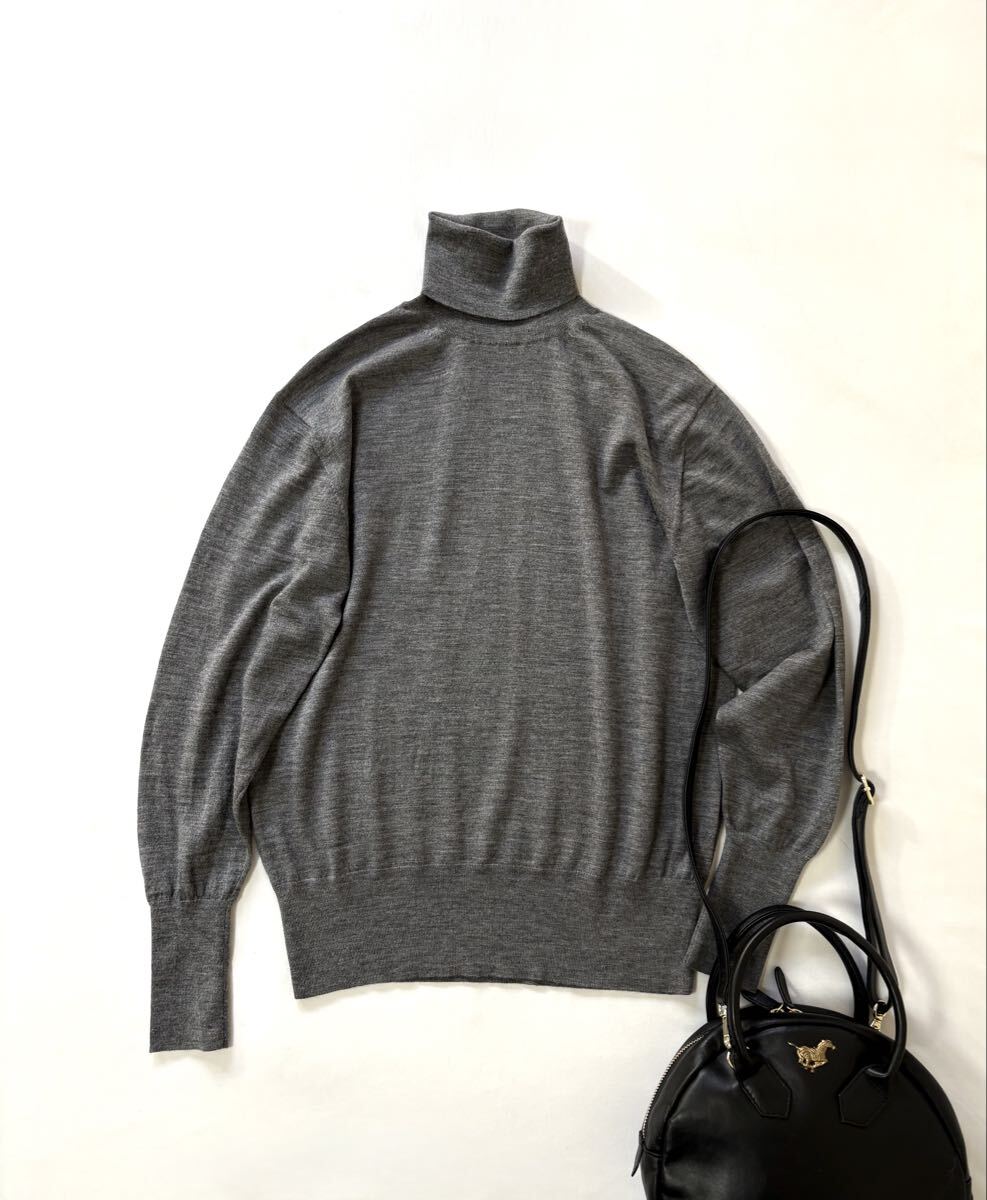 > 2023 スピックアンドスパン 18G タートルネック ニット プルオーバー ウォッシャブル グレー