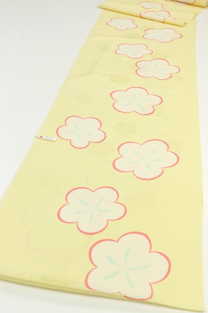 ※こちらの商品にはお仕立てはついておりません。 逸品!「染の百趣矢野」お洒落用長襦袢をご紹介致します。 染の百趣 矢野 しっとりとした生地は薄黄色のお色目でございます。 生地には梅と楊柳調の地紋が施されており、やや光沢感がございます。 全体には、白色や薄水色、ローズピンク色のお色目で梅が飛柄で染められております。 訪問着からお洒落着まで幅広くお召しいただける事でしょう。 -状態・素材:新品 未仕立 正絹 -落款・証紙: -参考着用年代: 20代~40代 -着用時期 :10月~5月 -着用シーン: ランチ、お稽古、展示会、観劇、 旅行など