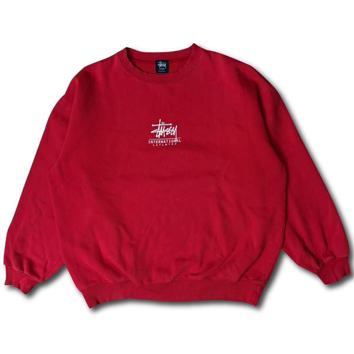 - 【90s】Stussy Stock Logo Crew L Red ステューシー スウェット プルオーバー トレーナー ヴィンテージ レッド 紺タグ レア 99