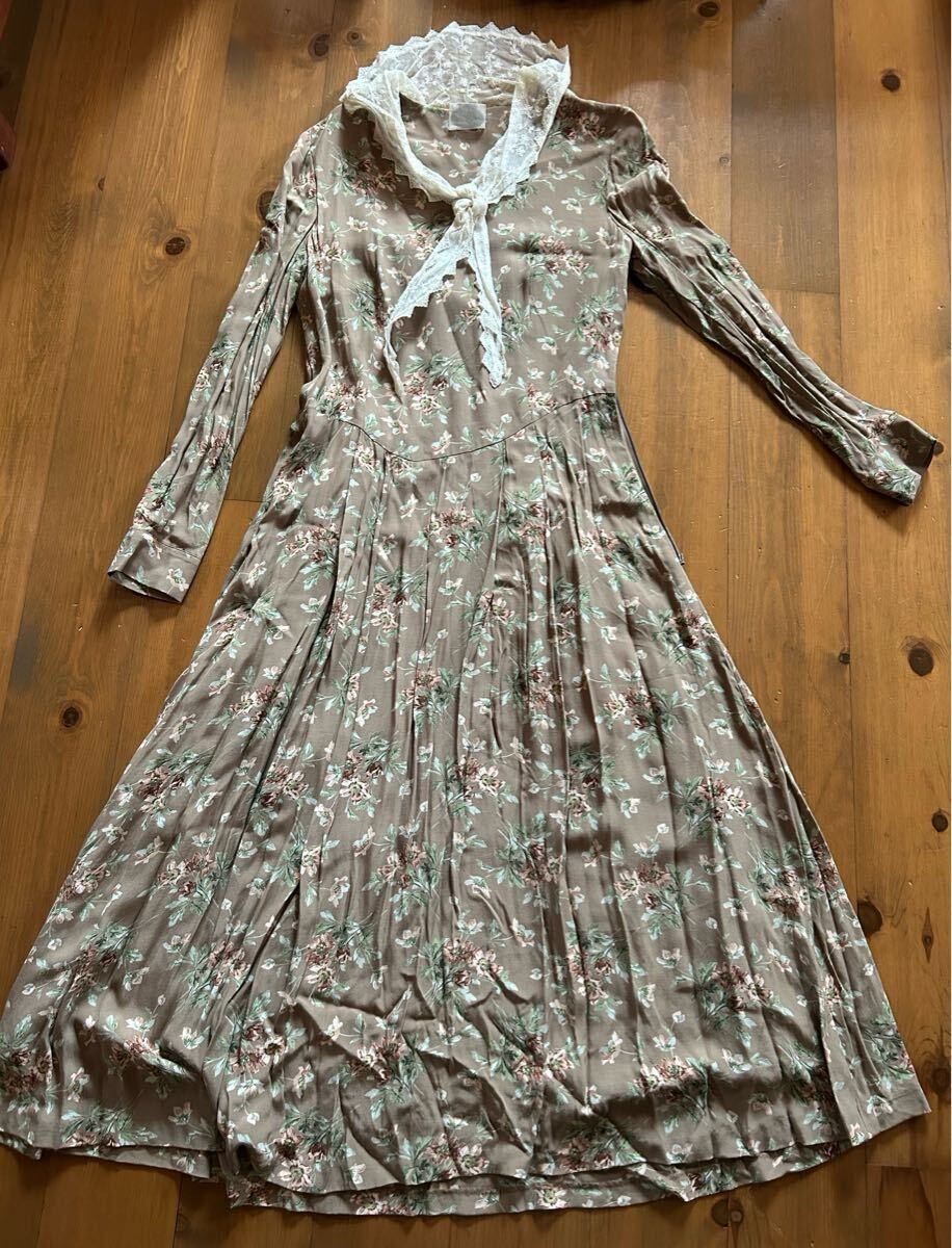 - ローラアシュレイ ロングワンピース 花柄 レース襟付き