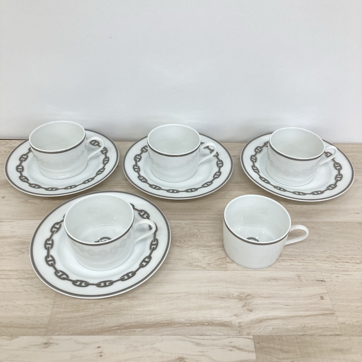 - HERMES エルメス シェーヌダンクル カップ&ソーサー 4客 ティーカップ コーヒーカップ 食器 陶器[R0142]