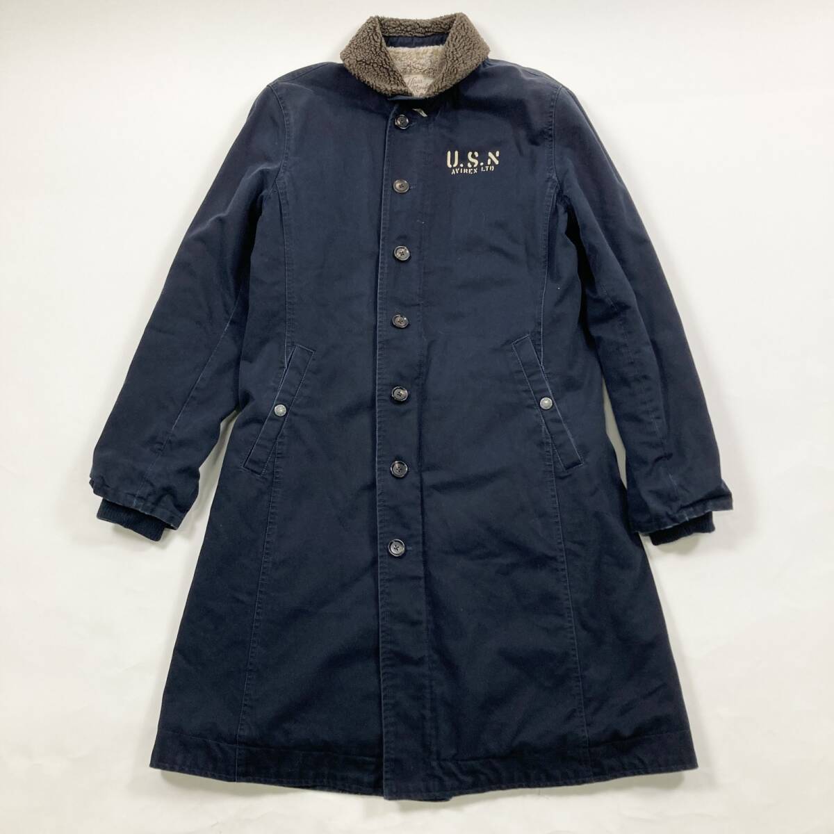 > ★ AVIREX アヴィレックス ミリタリージャケット カスタム デッキコート アウター ロング丈 ファー ネイビー サイズL レディース 1.5kg