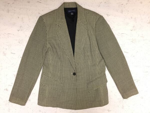 - アンクライン Anne Klein モード クラシック ノーベント ノッチドラペル 総柄 シングルテーラードジャケット レディース ウール100% 8 黒白