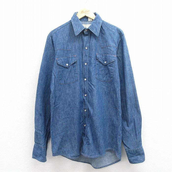 - L/古着 長袖 ウエスタン シャツ メンズ 80s コットン 紺 ネイビー デニム 25oct29 中古 トップス