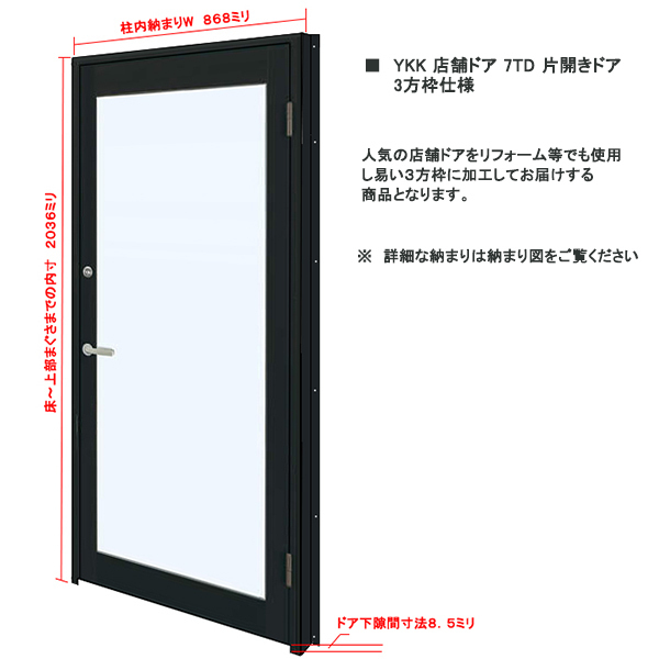 | 商品名 | アルミサッシ 新品 店舗ドア 7TD W868×H2036 片開き 複層 3方枠仕様 |