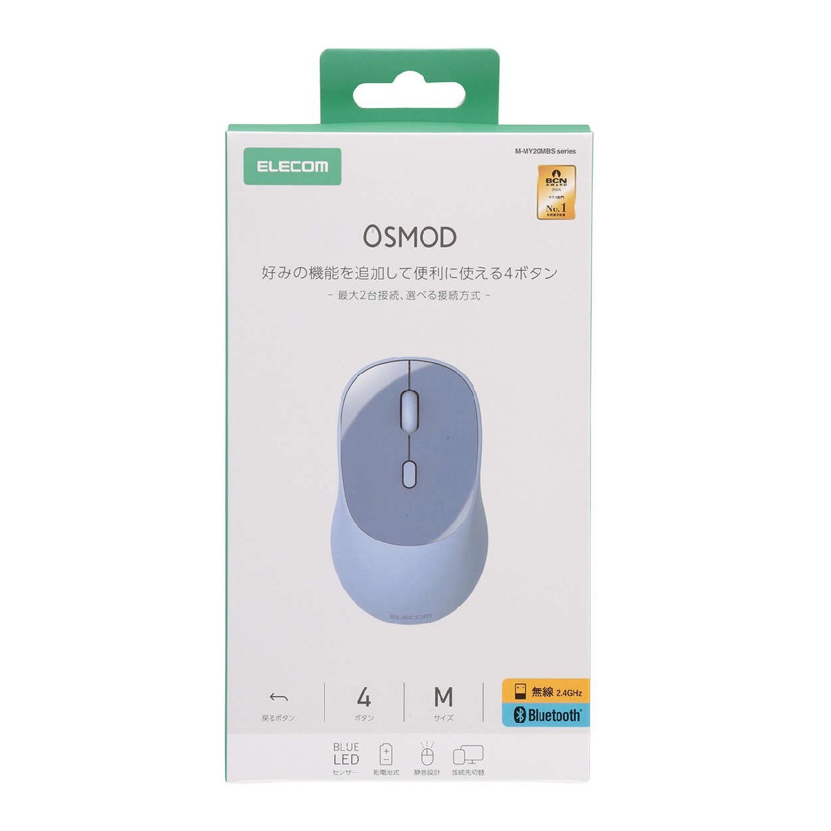 > Bluetooth/USB無線 4ボタンワイヤレスマウス [OSMOD] Mサイズ 静音ボタンや2台接続可能なマルチペアリング機能搭載: M-MY20MBSXBU