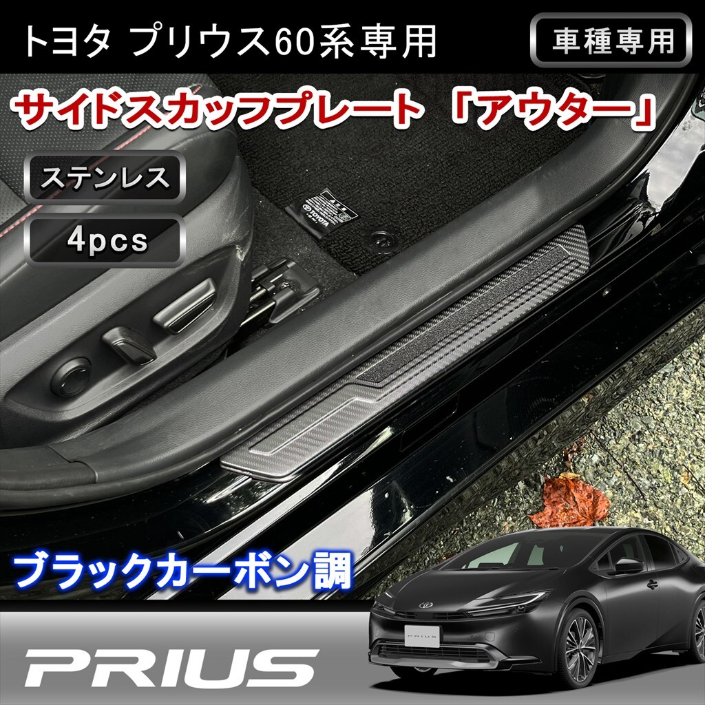 > 【60系プリウス 専用】 サイドスカッフプレート アウターステンレス 4P カーボン調 内装 カスタムパーツ