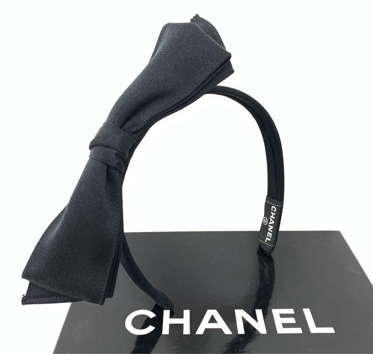 - T10/112 未使用級 ビンテージ CHANEL シャネル サテン リボン付カチューシャ ブラック